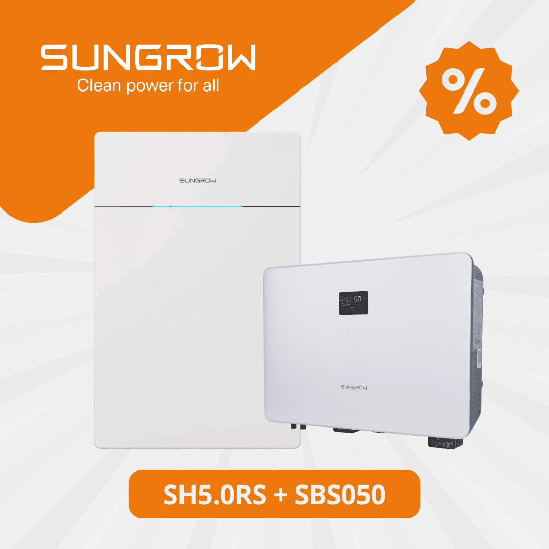 El pack compuesto por el inversor híbrido Sungrow SH5.0RS y la batería de litio Sungrow SBS050 ofrece una solución completa para sistemas fotovoltaicos residenciales con almacenamiento energético.