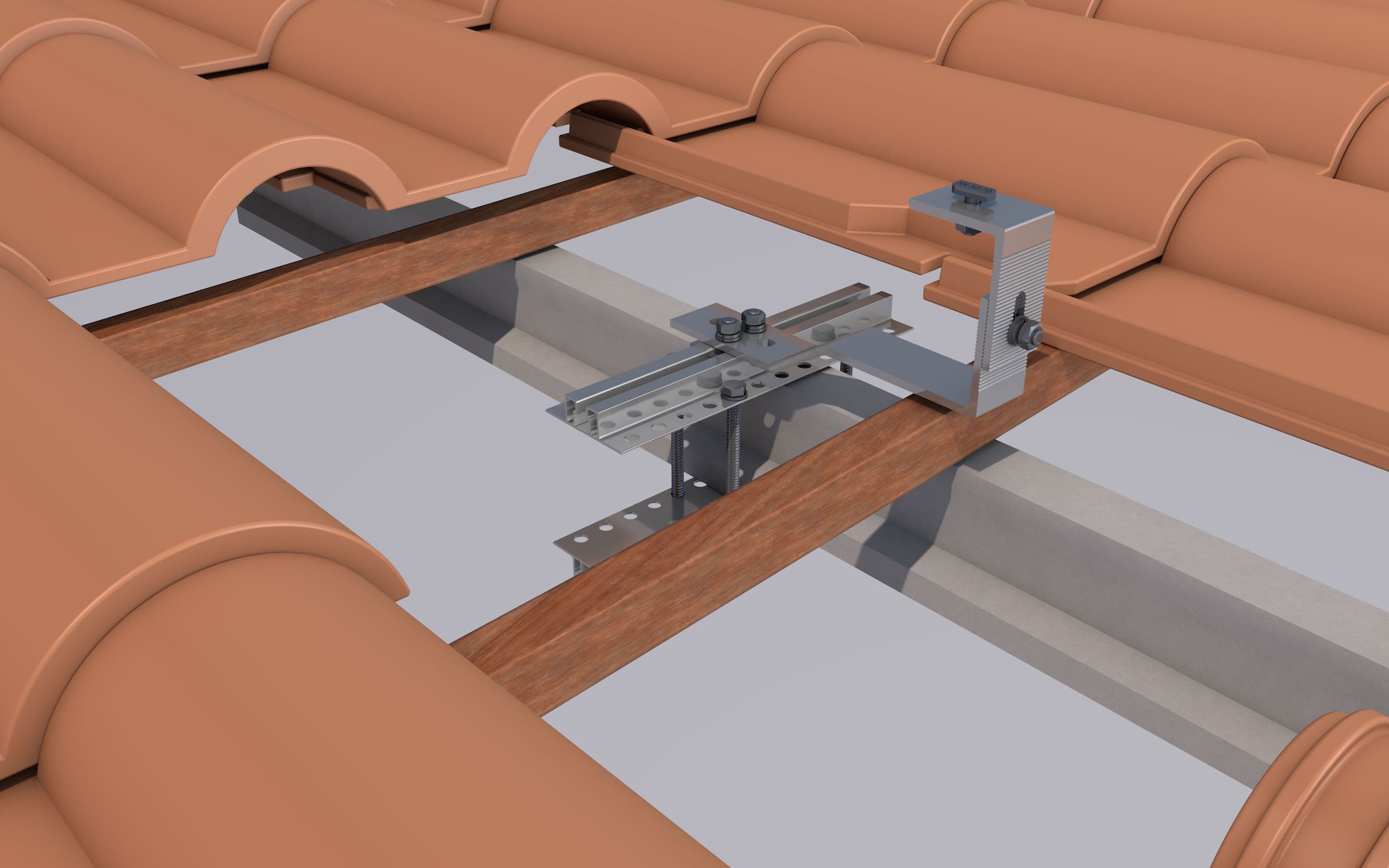 Sistema de Fijación Coplanar 02.2V para Cubierta de Teja con Anclaje a Madera u Hormigón