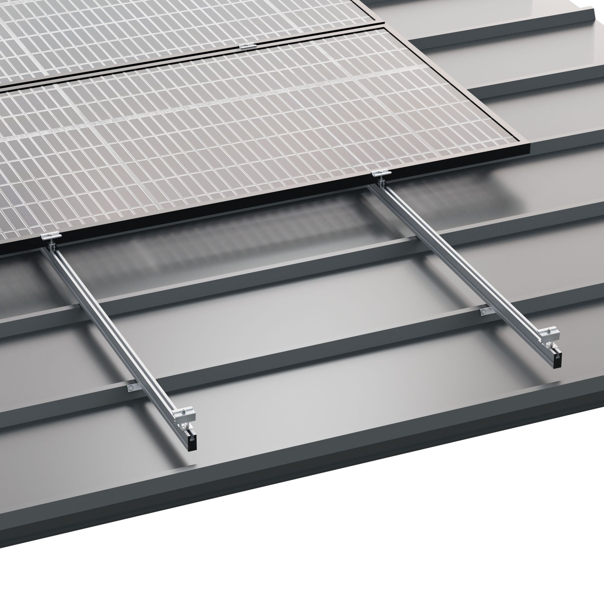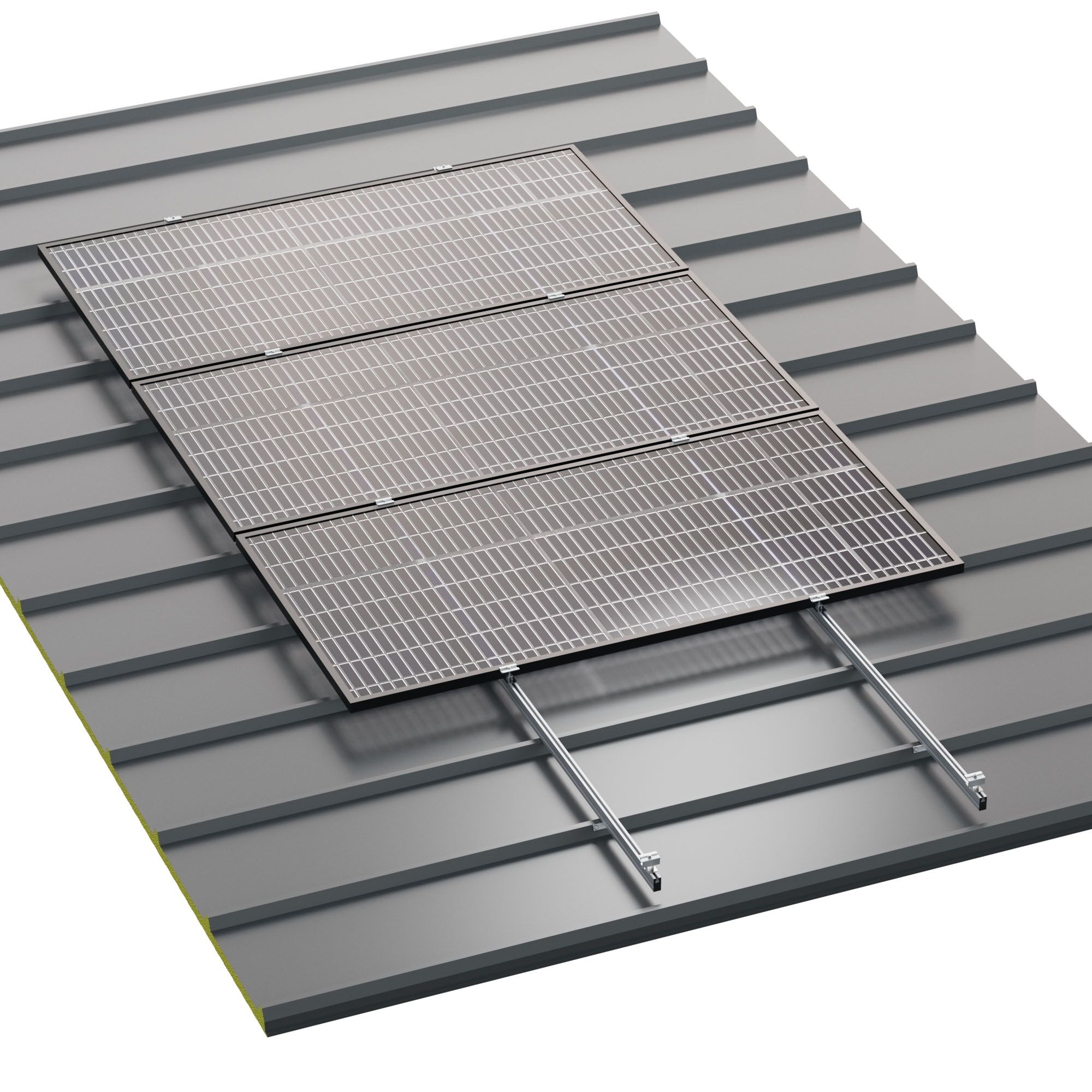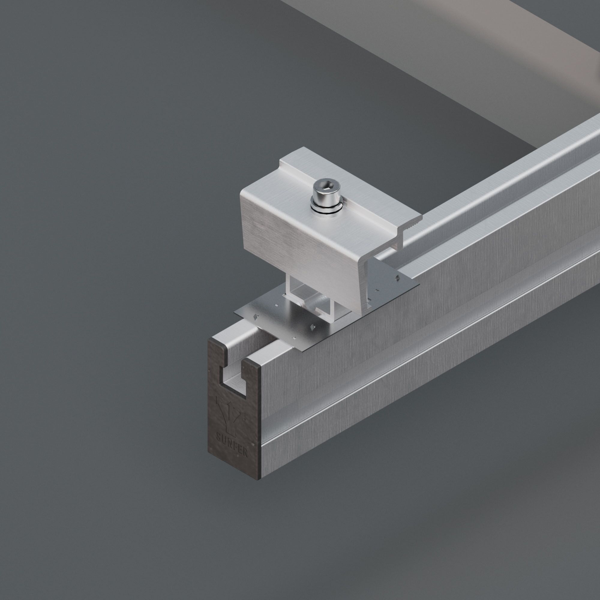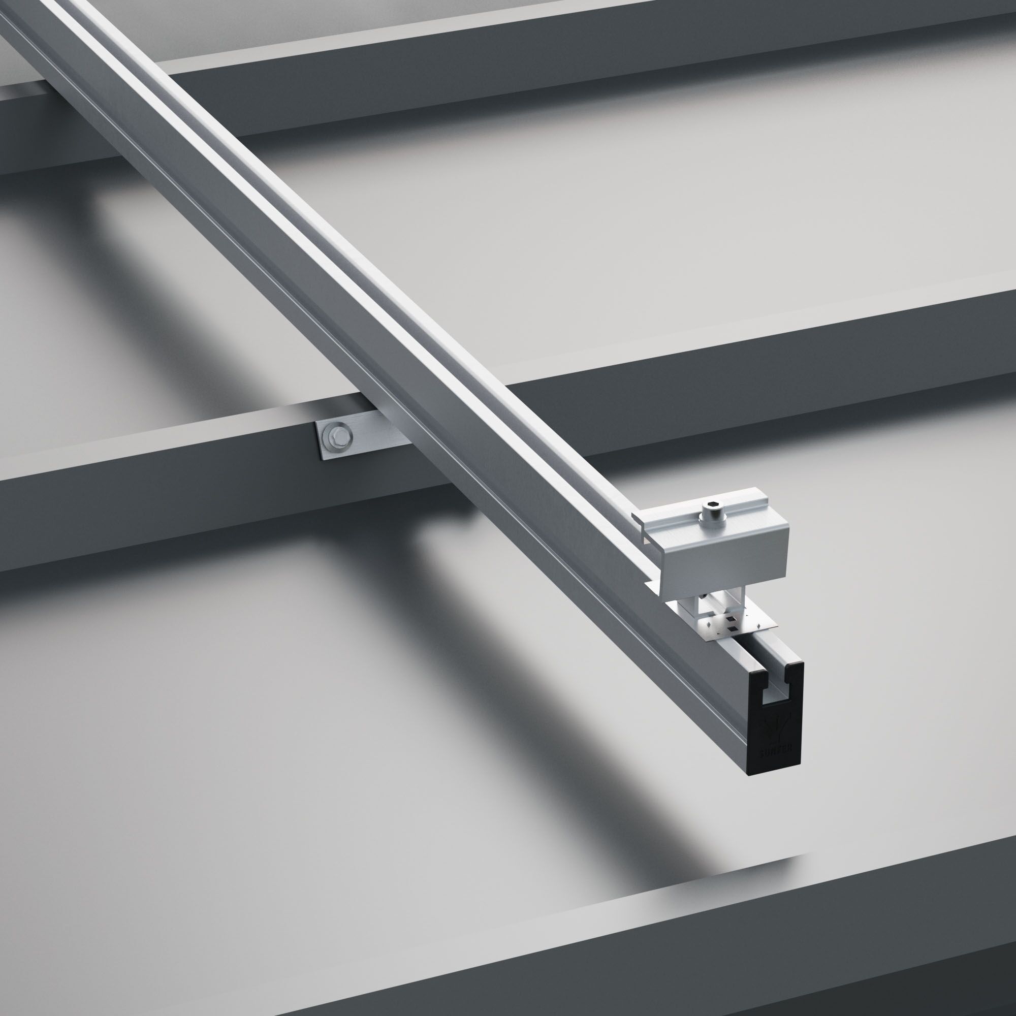El sistema 04V de Sunfer es un soporte coplanar continuo diseñado para la instalación de paneles solares sobre cubiertas metálicas tipo chapa. Su fijación directa sobre la chapa, mediante tornillos autorroscantes, garantiza una instalación rápida, segura y eficiente, respetando la estanqueidad de la cubierta.