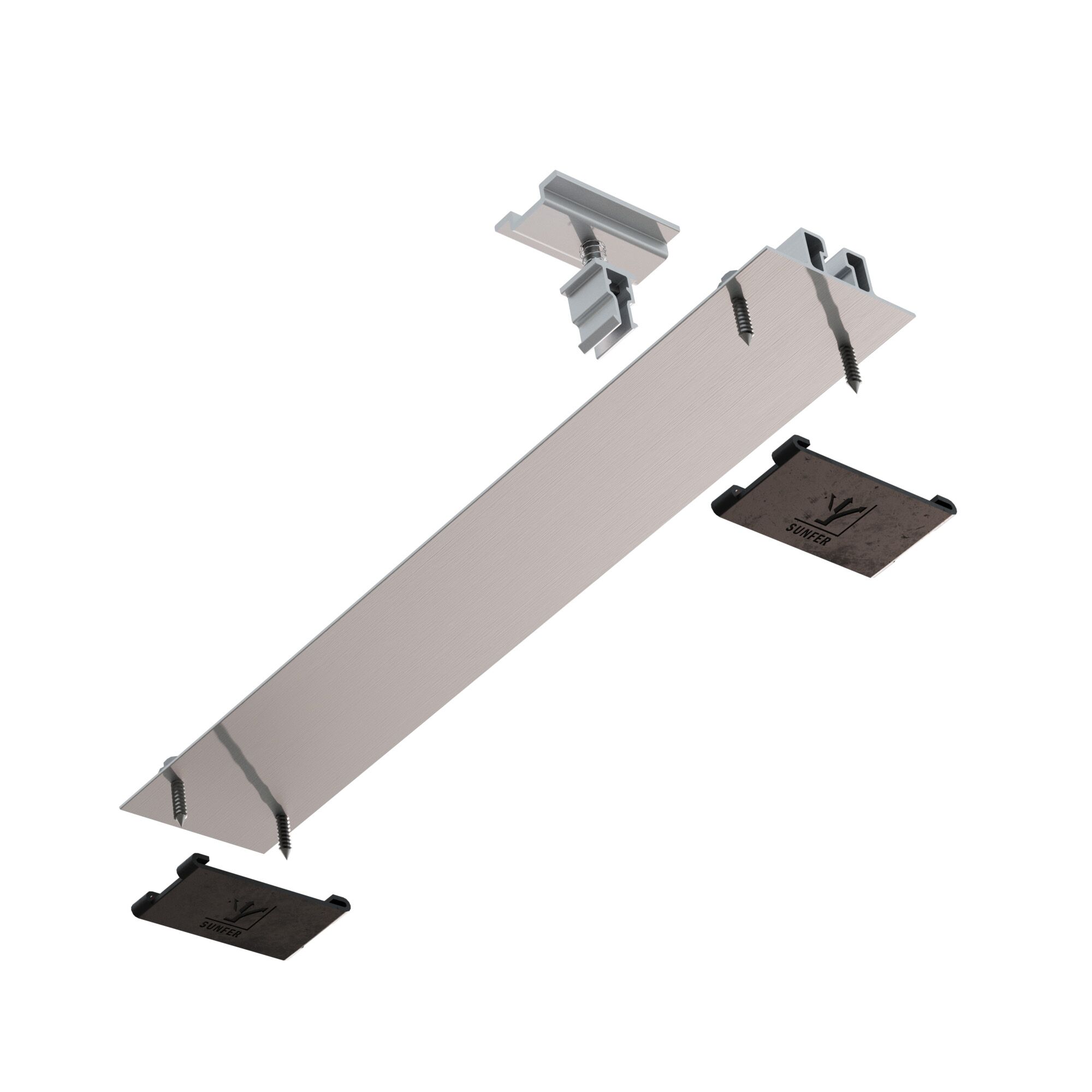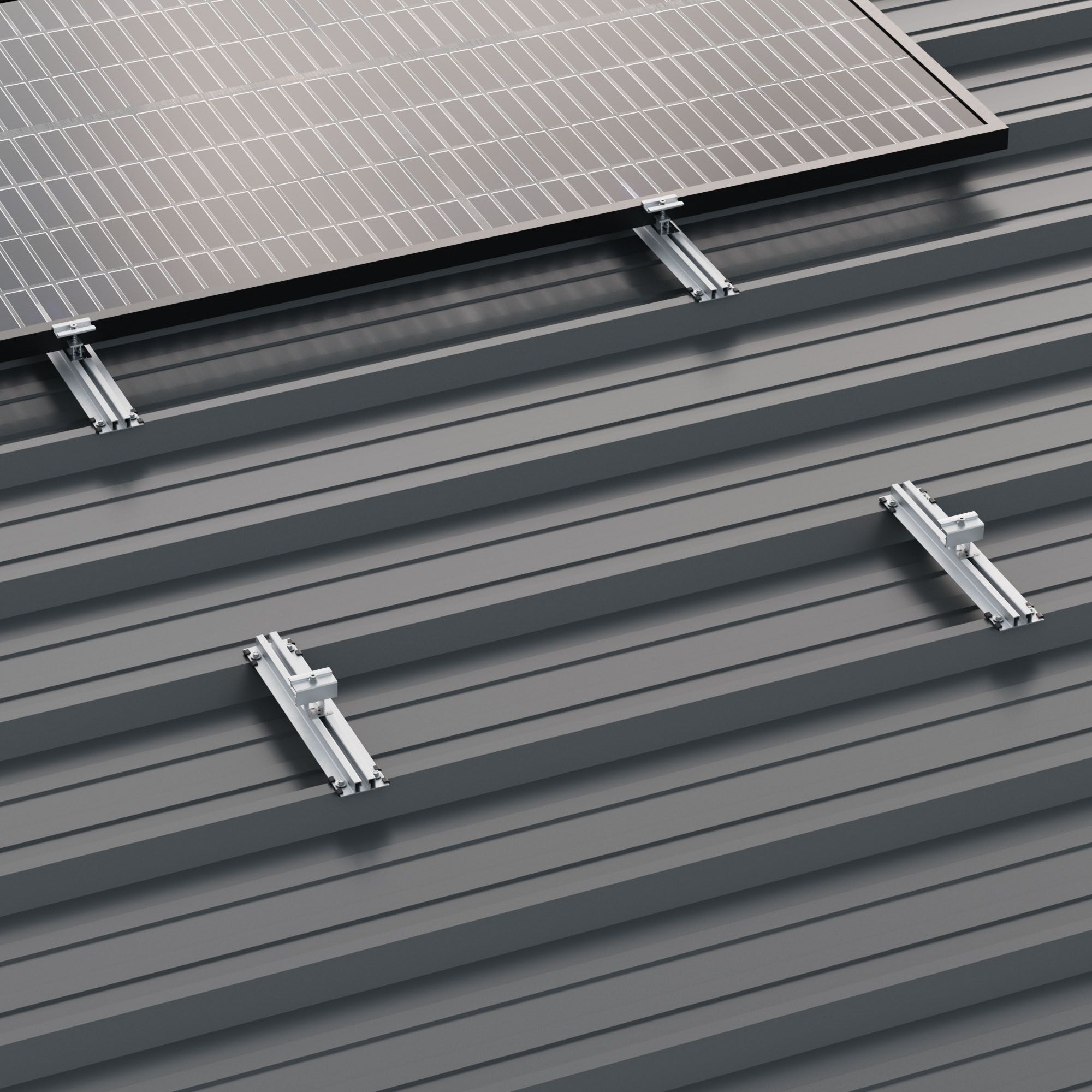 El sistema 05V de Sunfer es un soporte coplanar tipo microrail, diseñado para la fijación directa de módulos solares sobre cubiertas metálicas grecadas. Su diseño compacto y sencillo permite una instalación rápida, segura y eficiente, con fijación directa a la chapa mediante tornillos autorroscantes.