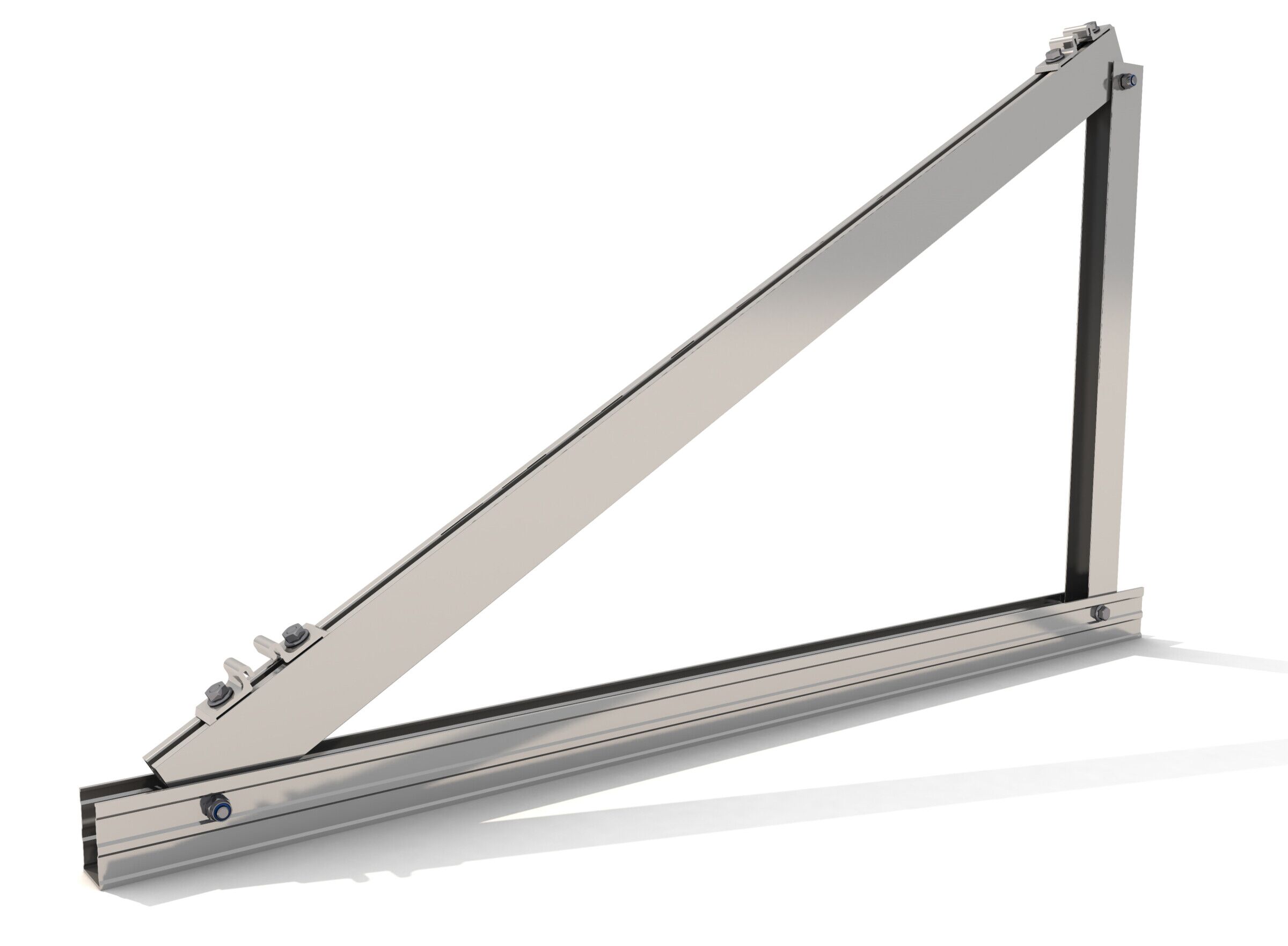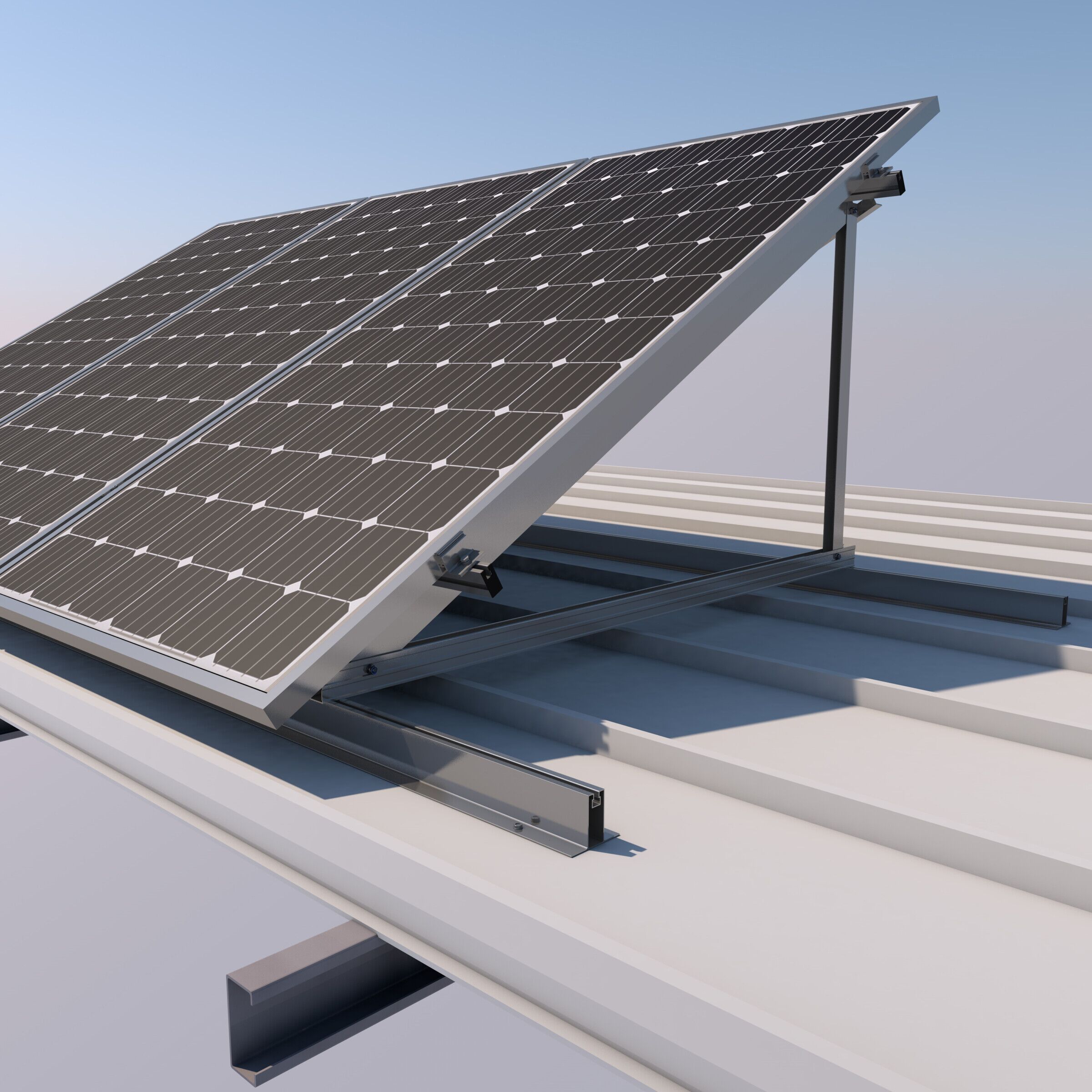 El sistema 10V de Sunfer es un soporte inclinado cerrado diseñado para la instalación vertical de módulos solares sobre cubiertas metálicas. Su estructura robusta, con triángulo preensamblado, permite una fijación segura y eficiente, ofreciendo inclinación fija de 15° o 30° para optimizar la producción fotovoltaica.