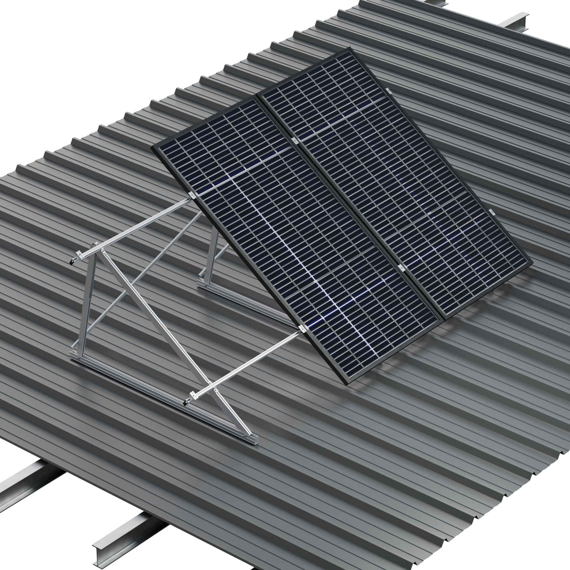 El sistema 13V de Sunfer es un soporte inclinado abierto y regulable diseñado para la instalación vertical de módulos solares sobre cubiertas metálicas. Su estructura con triángulo preensamblado y plegable permite ajustar la inclinación entre 20° y 35°, facilitando una instalación rápida, robusta y adaptable a las necesidades del proyecto.