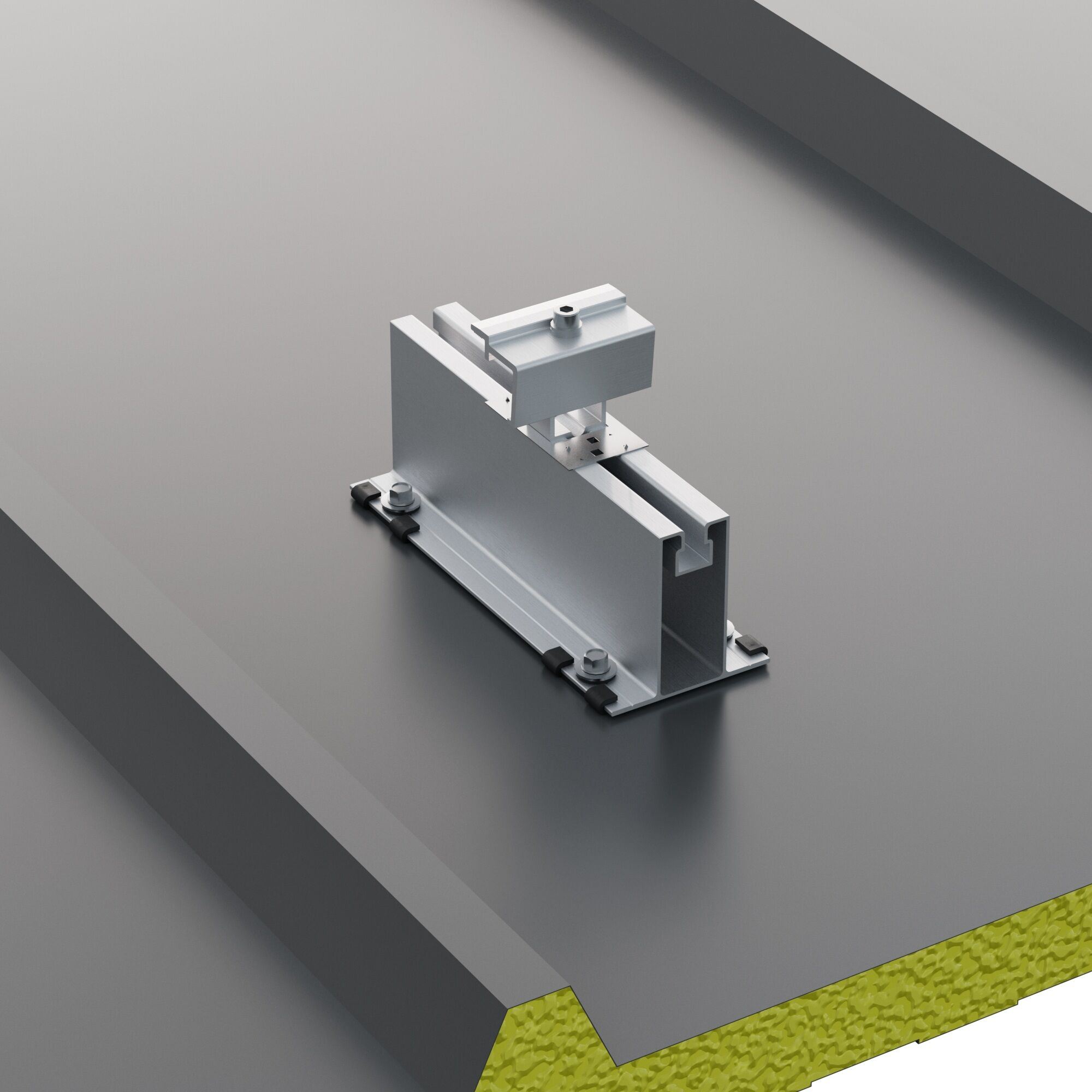 El sistema S07 de Sunfer está diseñado para la fijación directa sobre cubiertas de panel sándwich con valle plano de al menos 55 mm de ancho, proporcionando una sujeción segura sin necesidad de estructura auxiliar. Se instala directamente con tornillería incluida y garantiza una excelente estanqueidad gracias a la junta de EPDM.